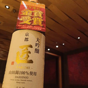 Takumi DaiginjoTakumi Daiginjo, Yamada Nishiki grown in Hyogo. Kyoto prefecture. Notes of melon and chewing gum. Sweet and smooth texture but slightly dry, S...