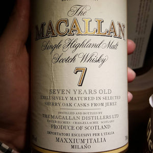 Macallan 7, Old Bottle, Imported for Italy Maxxium Italia, 40% abv.Nose: light sherry notes, white grapes, raisins, the sherry notes dampen wit... -