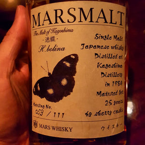 Mars Malt 25, The Malt of Kagoshima, H. Bolina, "Lost Butterfly", Pappilon Series, 1984, Sherry Casks, 59/111, 45% abv.